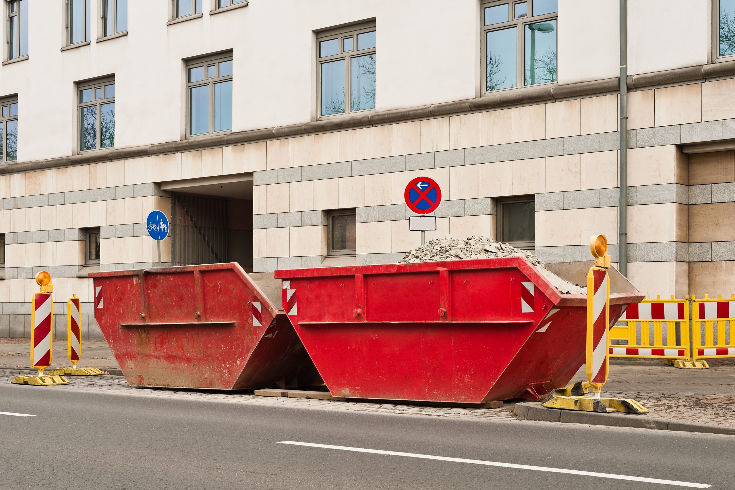 randsteine mit walze Zwei rote Container für Bauschutt stehen am Strassenrand Original size is 2560 × 1707 pixels